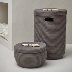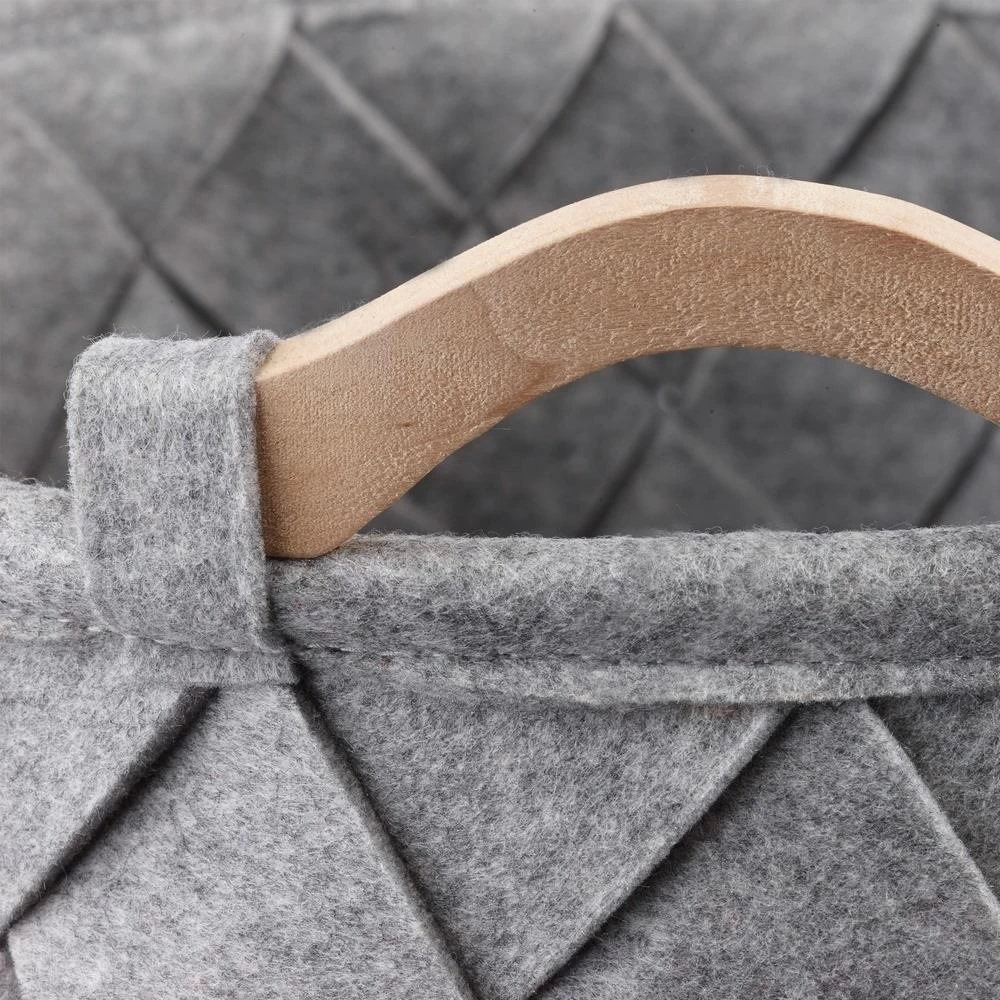 Je was wil je het liefst bewaren op een handige plek. De Amy wasmand van Aquanova is met zijn handige design perfect voor in de slaap- of badkamer. Door het gevlochten vilt blijft hij mooi rechtop staan. Mooi detail: de houten handgrepen.