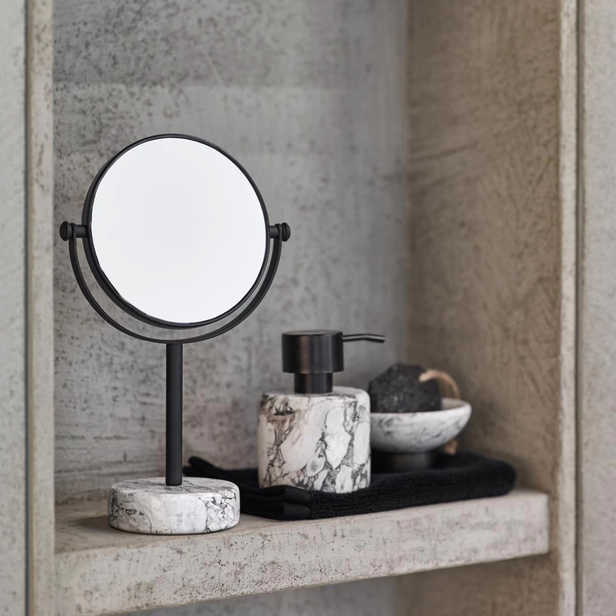 Deze elegante Nero spiegel van het merk Aquanova heeft een mooie marmeren basis en is ideaal voor de badkamer. Hij is uniek en stijlvol. De spiegel is compact, handig in gebruik en complementeert het interieur van elke badkamer.