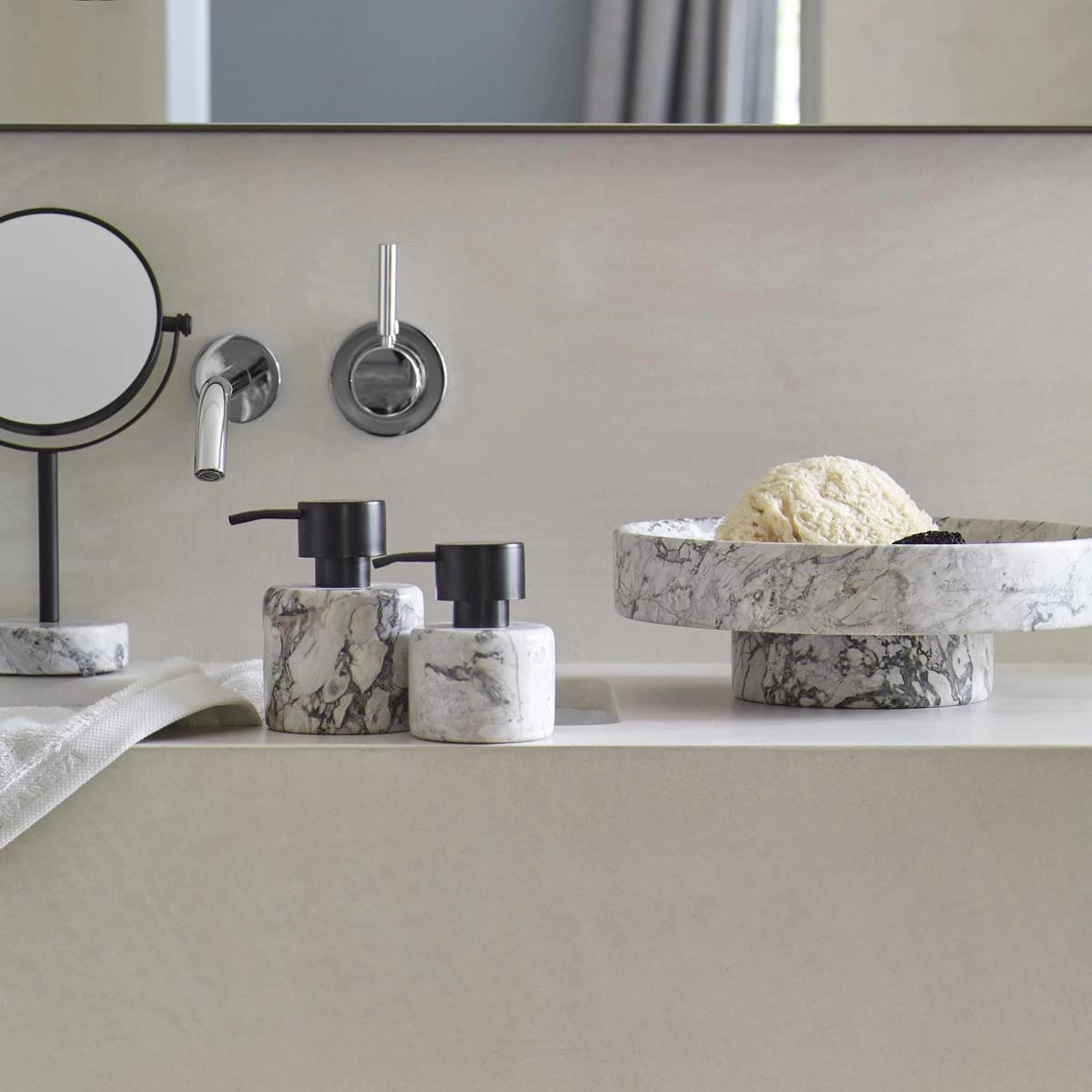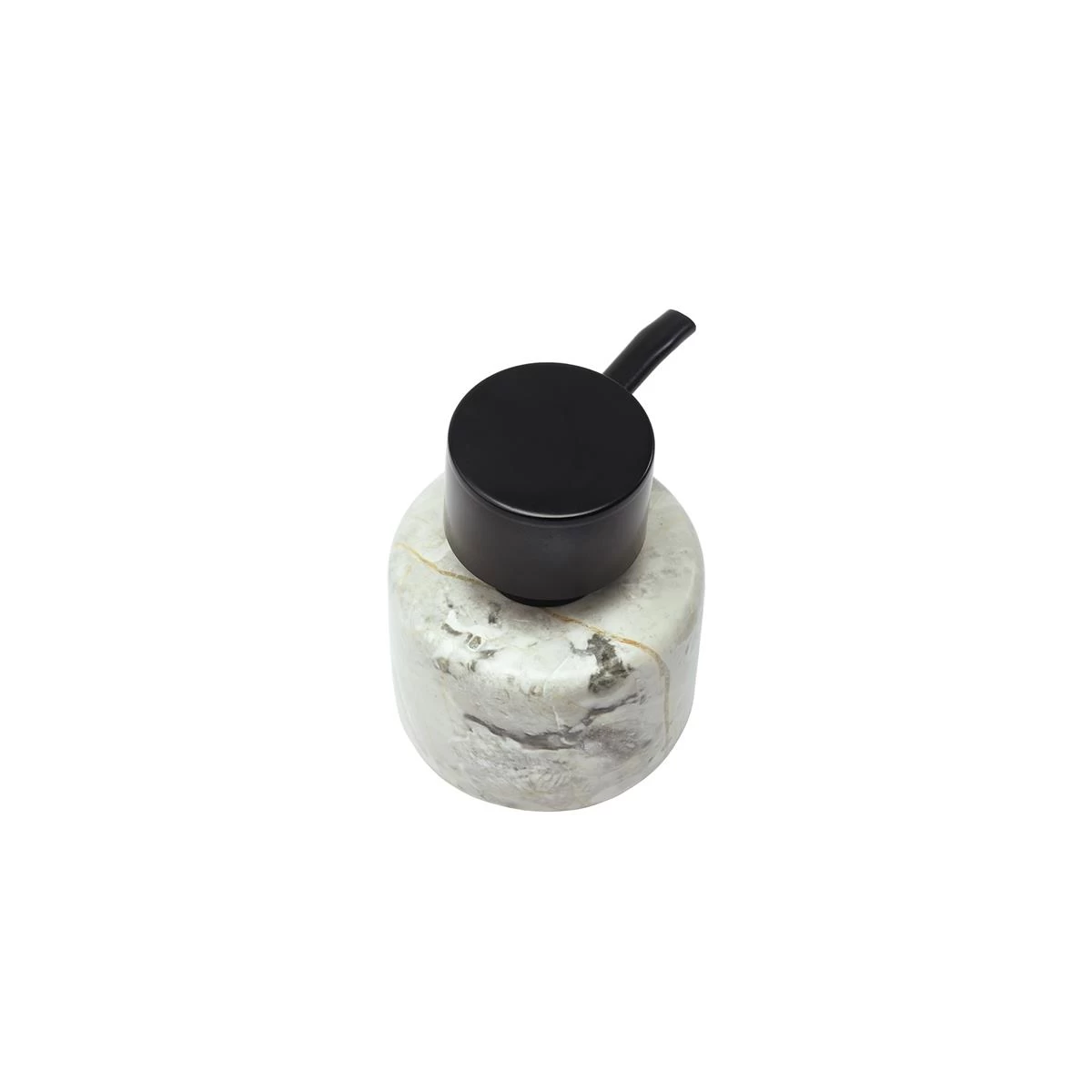 Deze Aquanova Nero zeepdispenser zorgt met zijn tijdloze vormgeving en marmeren patroon voor een elegante uitstraling en draagt bij aan een goede hygiëne. Hij is gemaakt van natuursteen en perfect voor het opslaan van handzeep of sanitizer.