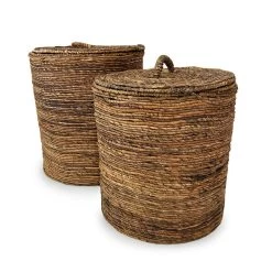 Deze set van twee duurzame manden is gewoonweg geweldig (Chingon in het Mexicaans)! Gemaakt van diepbruine bananenbladeren, geven deze manden uw huis een natuurlijk tintje. Gebruik ze voor je was, voor opslag of zelfs voor een mooie plant – je heb