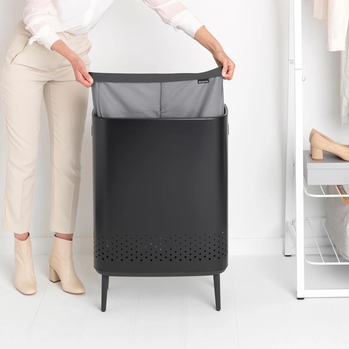 Bij de Brabantia Bo Wasbox met uitneembare waszak komen gemak en schoonheid samen in je badkamer. Zet de wasbox strak tegen de muur op zijn elegante pootjes en bespaar zo ruimte. De ventilatiegaten zorgen ervoor dat je wasgoed goed kan ademen.