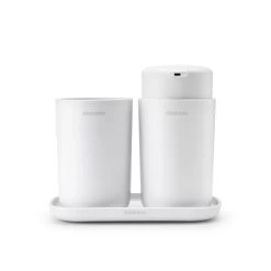 - Praktische trio: zeeppomp, tandenborstelhouder en schaal