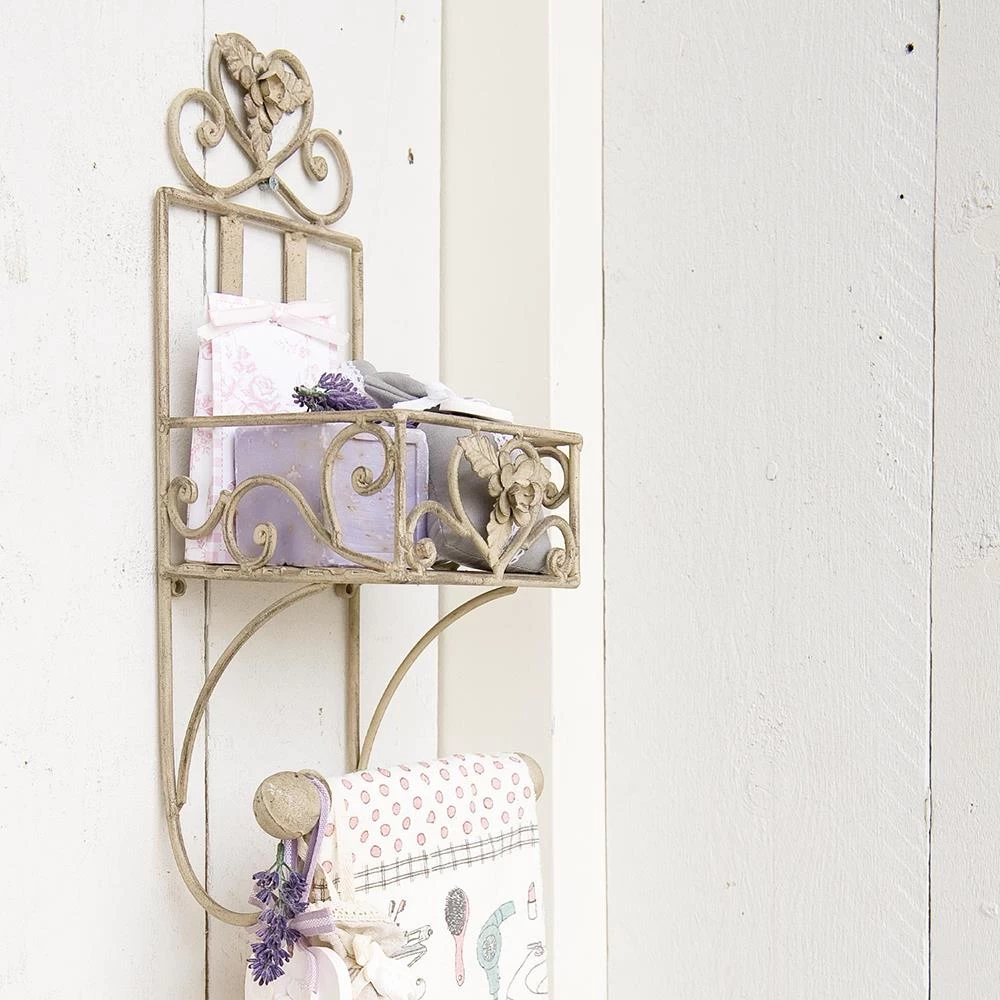 Beige metalen vintage toiletrol houder voor aan de wand met een rekje erboven van het merk Clayre & Eef.