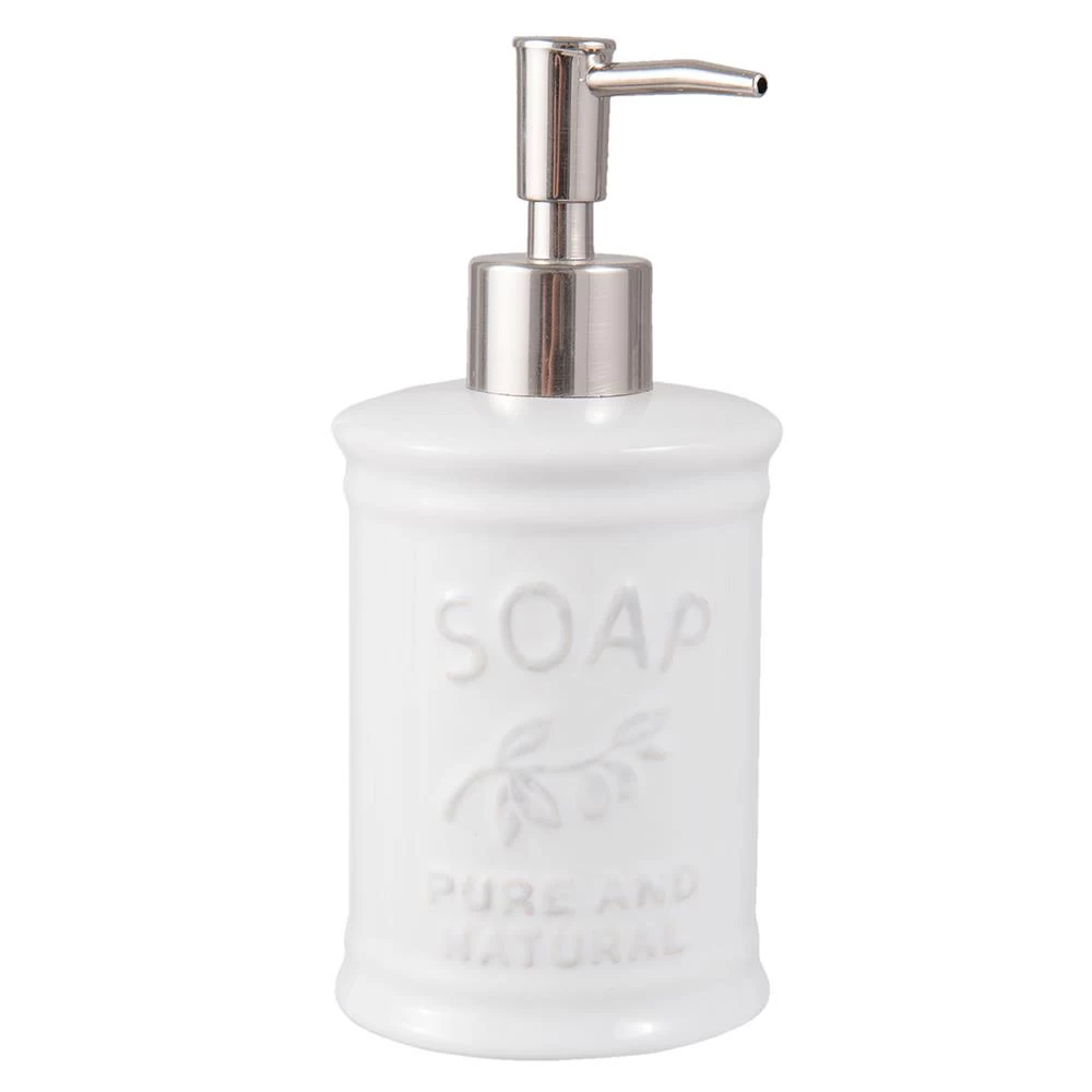 Wit keramisch zeeppompje met een romantische landelijke uitstraling en een tekst, van het merk Clayre & Eef