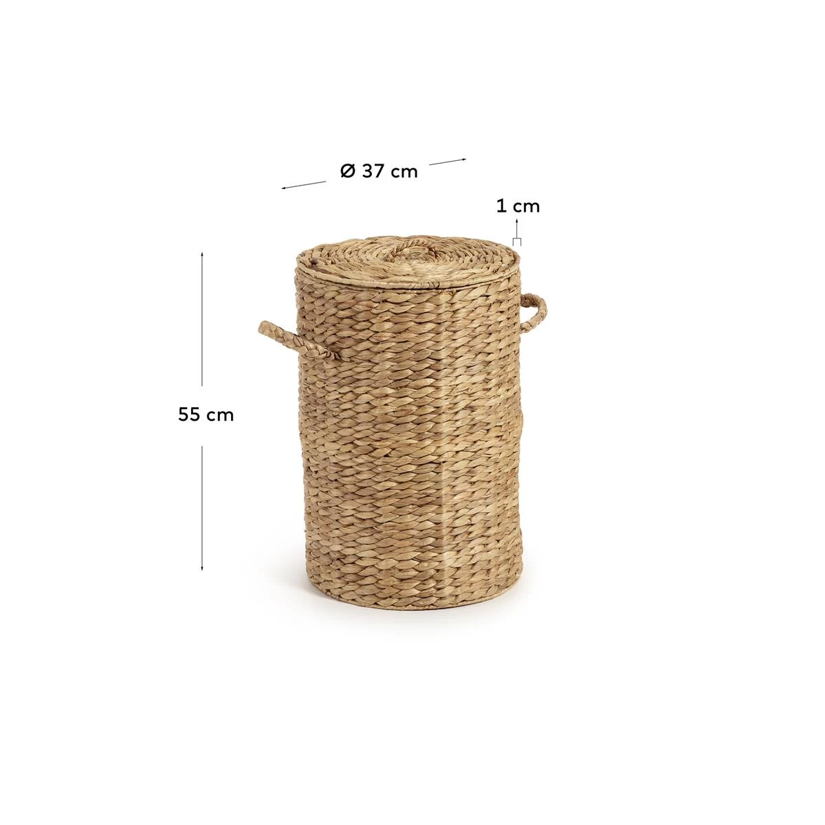 - Mand met handvatten en deksel gemaakt van handgeweven waterhyacint.