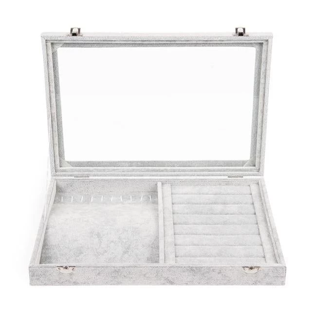 Berg al jouw sieraden, zoals armbanden, oorbellen en kettingen, veilig en stofvrij op in de sieradendoos van LYVION. De box is gemaakt van fluweel materiaal en is voorzien van een transparant display, waardoor je altijd van jouw juwelen geniet.
