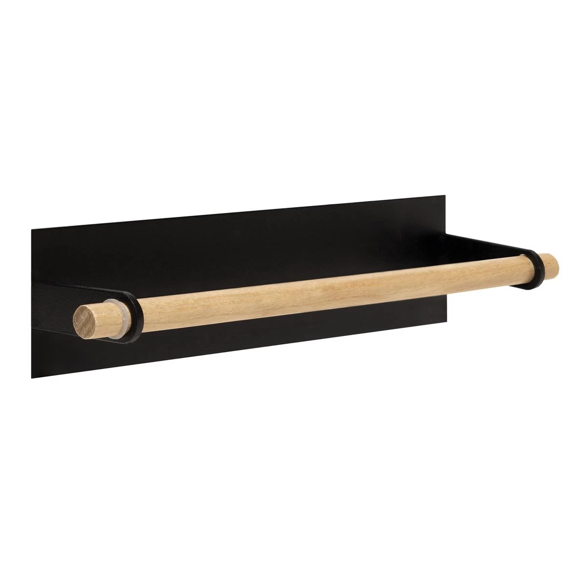 - De afmetingen zijn 6 x 25,5 x 6 cm (lxbxh). Het materiaal bestaat uit staal en hout. De houder is zowel in het zwart als in het wit te verkrijgen.