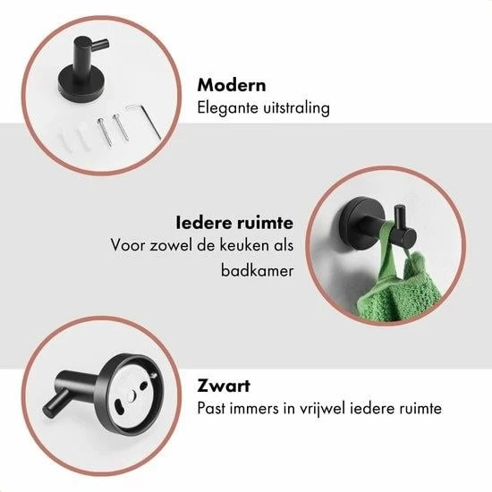 - De haak past in vrijwel iedere ruimte en is dan ook eenvoudig aan de muur te bevestigen.