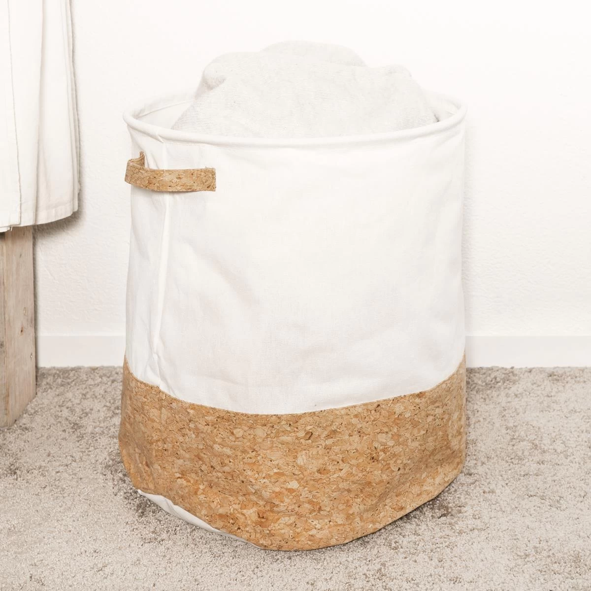 Deze wasmand van 38 liter is niet alleen ontzettend handig, maar ziet er ook nog eens fantastisch uit. De combinatie van katoen en kurk geeft de opbergmand een uniek uiterlijk.