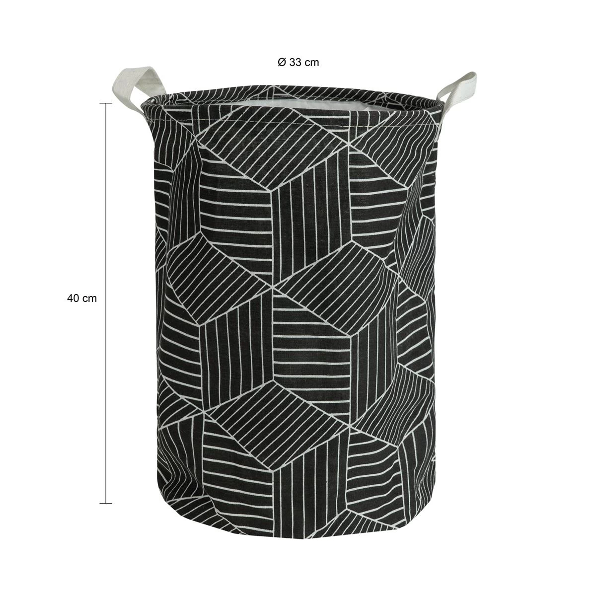 - Deze wasmand heeft een afmeting van 33 x 33 x 40 centimeter