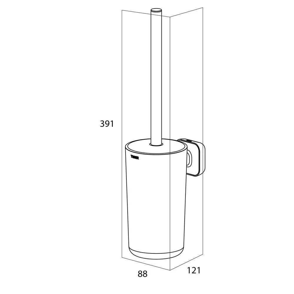 - Toiletborstel voor aan de muur van H 39,1 x B 8,8 x D 12,1 cm