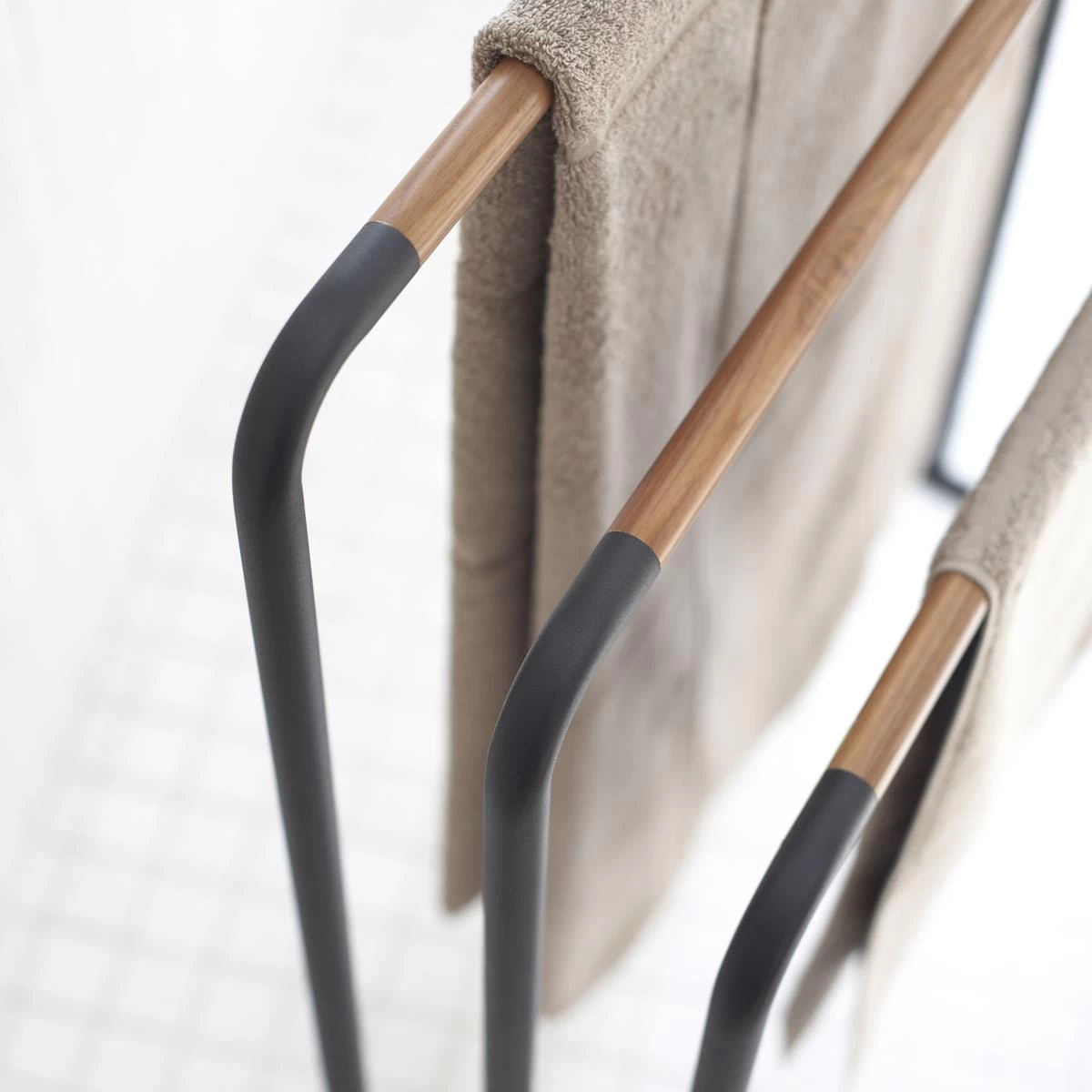 Dankzij het compacte design zet jij dit handdoekrek van Yamazaki neer waar jij wilt. En helemaal handig: omdat je niet hoeft te boren verplaats je het rek ook met gemak. Een simpel en elegant ontwerp met ruimte tot wel drie grote handdoeken!